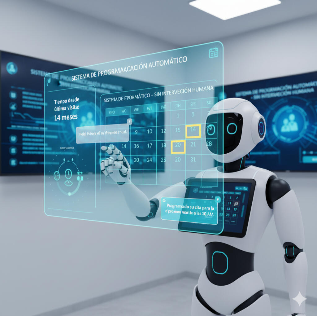 El agente contacta automáticamente a pacientes que llevan tiempo sin visitar la clínica. Agenda revisiones sin intervención humana.